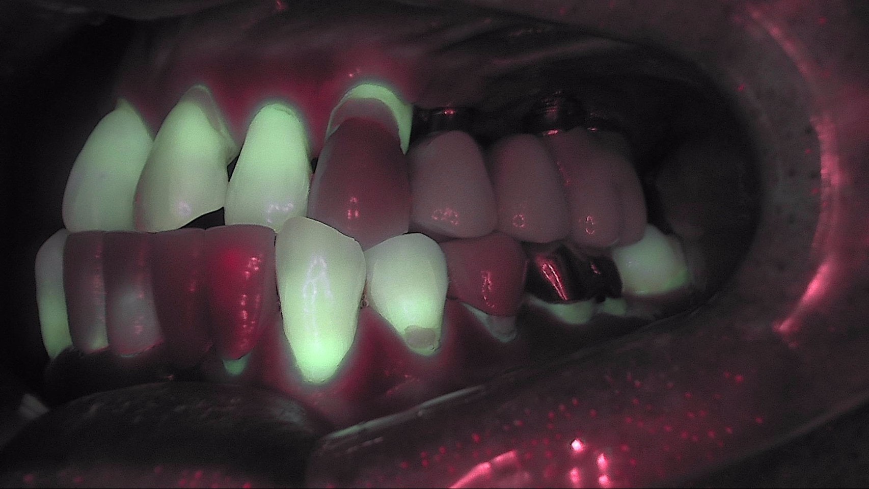 컴퓨터에 자동 저장되는 일반 사진과 형광 사진은 환자 상담에 유용하고 구강 질환 상태와 추이를 기록해 사용하는 데 유용합니다. 큐레이 소프트웨어와 함께 사용할 경우 치아의 붉은 형광 면적 비율 및 형광 소실 정도를 측정하여 수치화해 정량광 결과를 진단에 활용합니다. 정량광형광검사법을 구현하는 5단계진료체계인 선별검사-평가-진단-치료-관리에서 선별검사에 최적화된 진단기기입니다